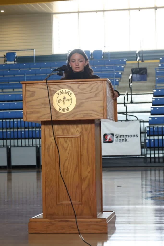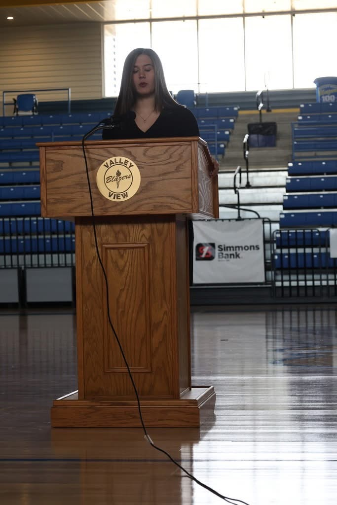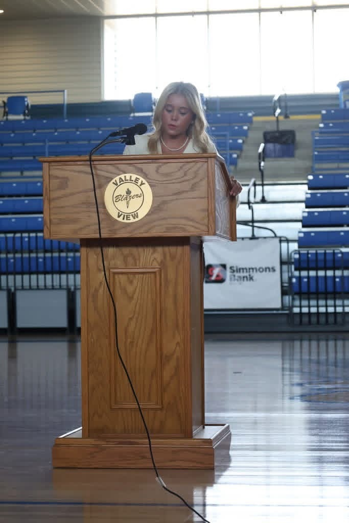 🇺🇸 Happy Veterans Day! 🇺🇸 Valley View Junior High student Addyson Putt kicked off her amazing new EAST project! She met with several incredible community partners — including Mayor Copenhaven, Brian Richardson, Jana Haskins, WAT 22, and many others who are making a difference for our local veterans. Addyson had the opportunity to visit City Hall and tour the Veteran Cottages. Her vision is to use her own personal experiences to help spread awareness about the benefits and resources available to local veterans. We’re so proud of Addyson’s hard work, compassion, and leadership. She even spoke at the Veterans Day Dinner at the Elks Lodge, sharing her message of gratitude and hope. Great job, Addyson! We are so proud of you! ❤️🤍💙 #BlazerPride🔥