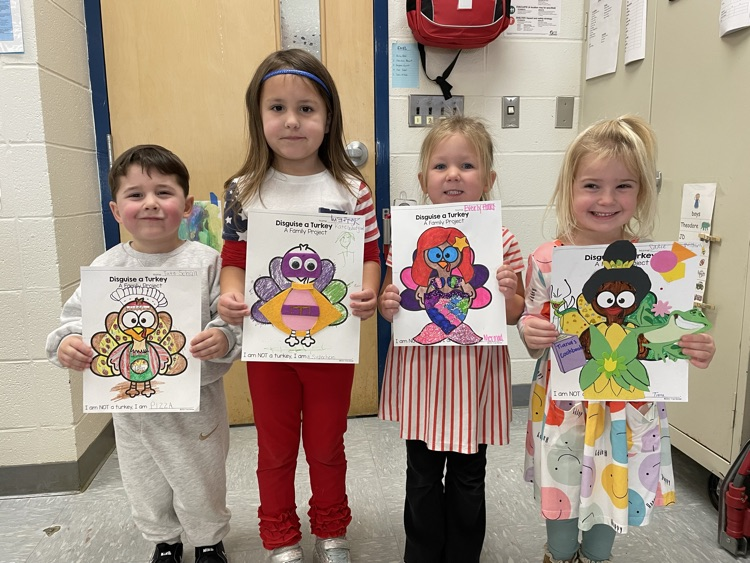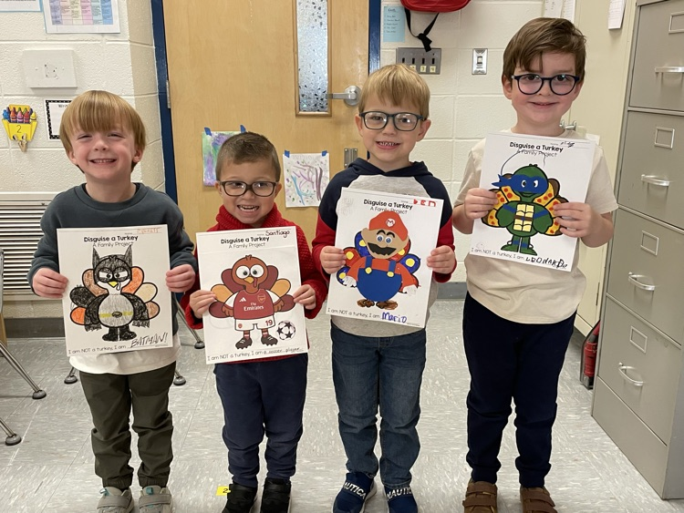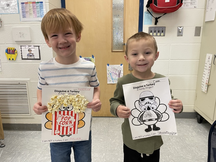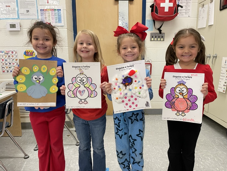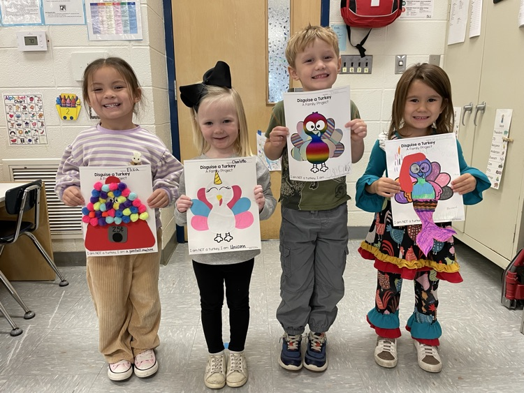 Gobble, gobble… or maybe not! 😂 🦃 Mrs. JoAnna & Ms. Christy’s Pre-K class read Turkey Trouble and then completed their Disguise a Turkey family project. These clever disguises were a hit! ✨ #BlazerPride🔥