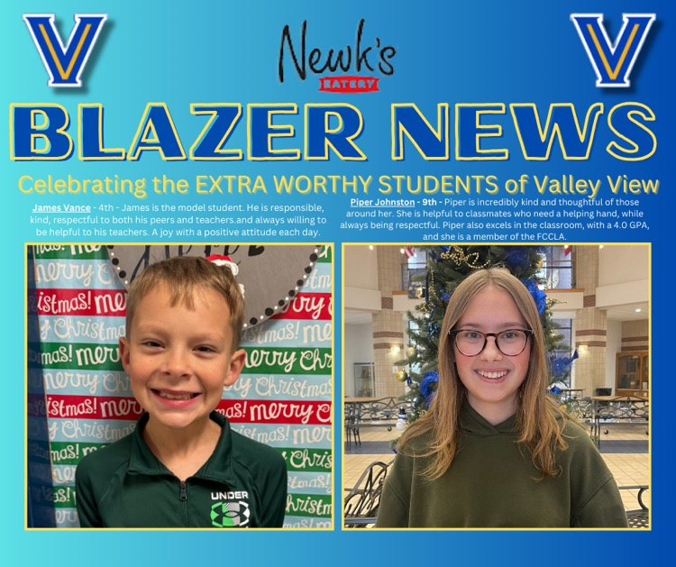 Each week two Blazers will be recognized as Newk’s Extra Worthy Students (NEWS) to celebrate the hard work of students who achieve at a high-level in the classroom, while also participating in extracurricular activities!