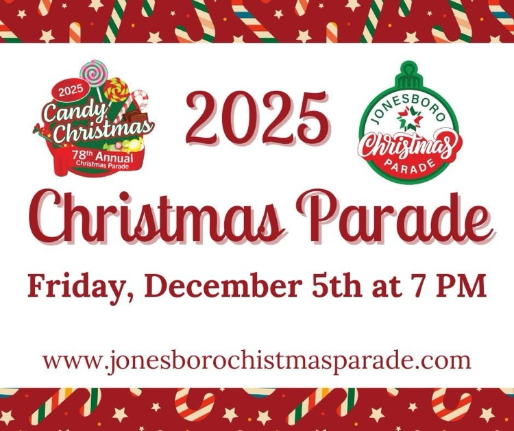 The 78th Annual Jonesboro Christmas Parade happening TONIGHT, Friday, December 5, 2025, from 7:00pm – 9:00pm in Downtown Jonesboro!
