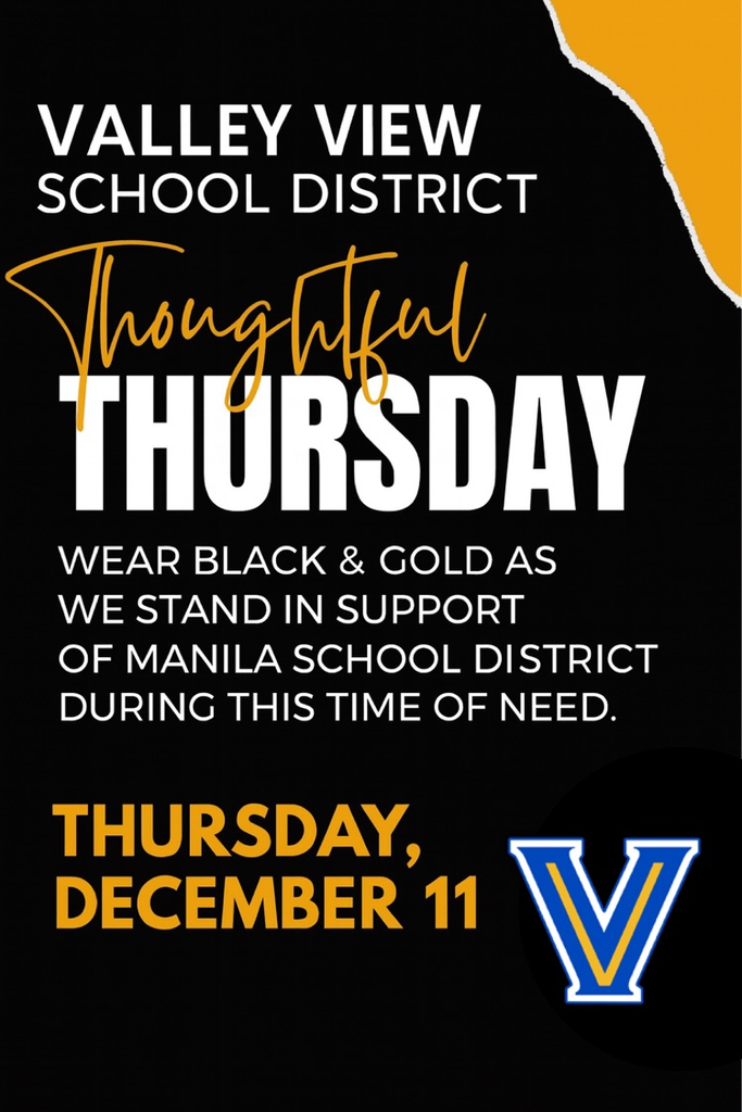 This Thursday, December 11, we are asking our students and staff to trade the blue & gold 💙💛 for black and gold 🖤💛 as we stand in support of the Manila School District during this time of need. Let’s show our neighbors that the Blazer family is praying for them and standing with them! 💙💛🖤
