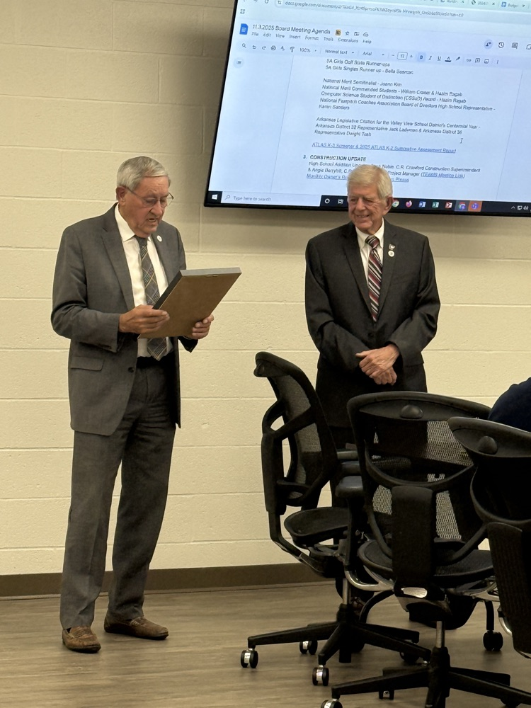Last night at the November Board Meeting, Representative Jack Ladyman (D32) and Representative Dwight Tosh (D38) presented a Legislative Citation commemorating Valley View’s Centennial Year! 💙💛