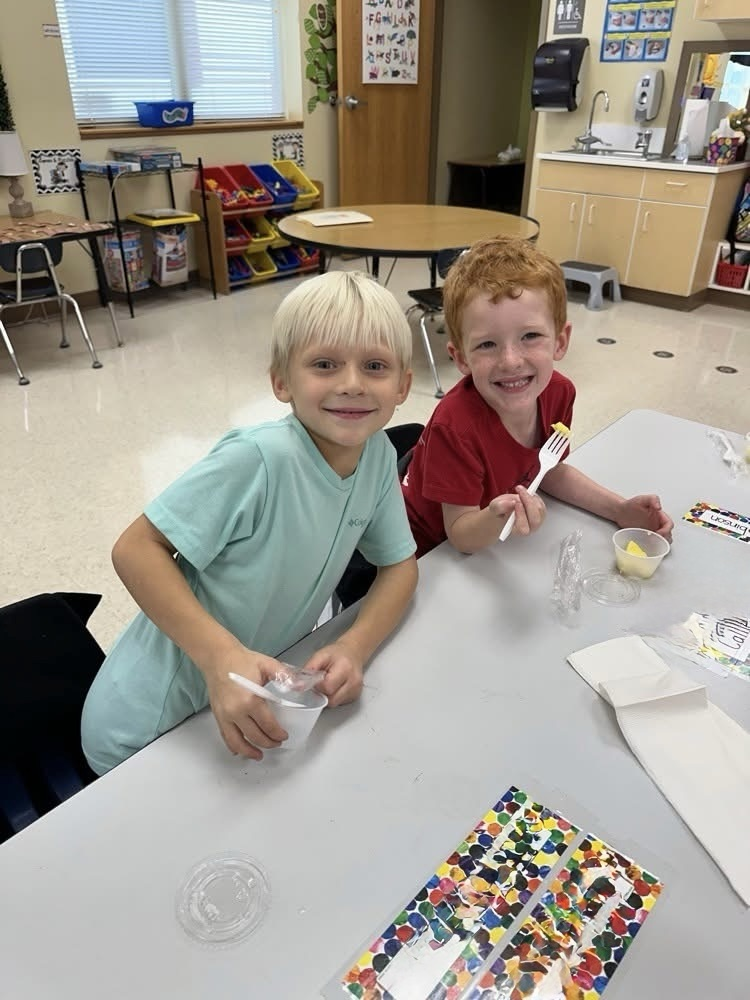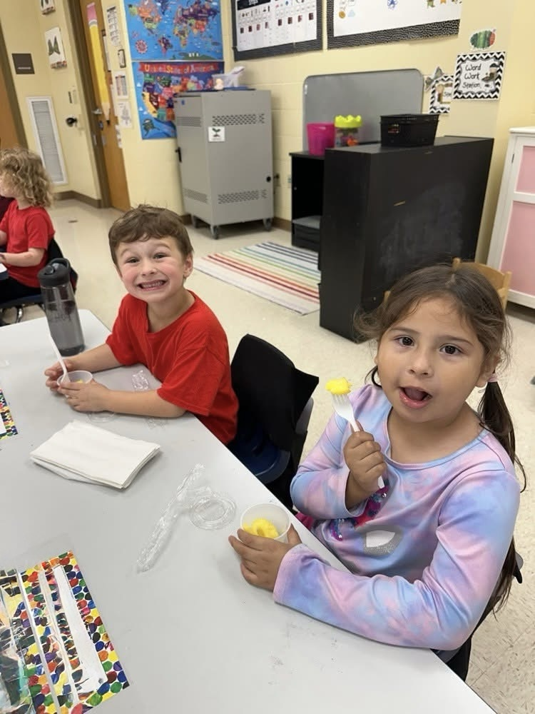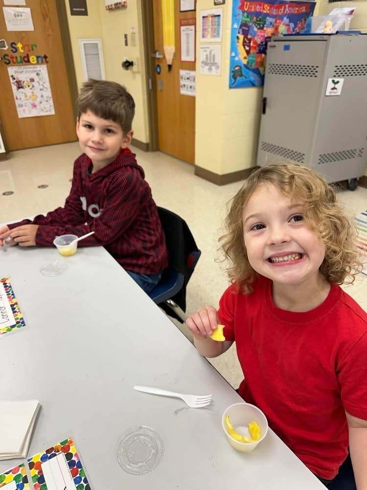🍍 I spy with my little eye… our kindergarten friends enjoying fresh pineapple! Thanks to our cafeteria’s Fresh Fruits and Vegetables Grant, students are learning that healthy eating can be fun and delicious! 💛💙