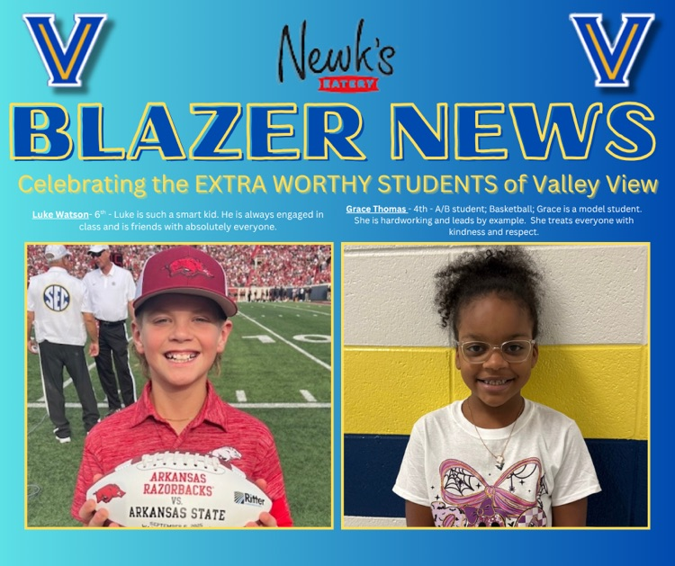 Each week two Blazers will be recognized as Newk’s Extra Worthy Students (NEWS) to celebrate the hard work of students who achieve at a high-level in the classroom, while also participating in extracurricular activities!