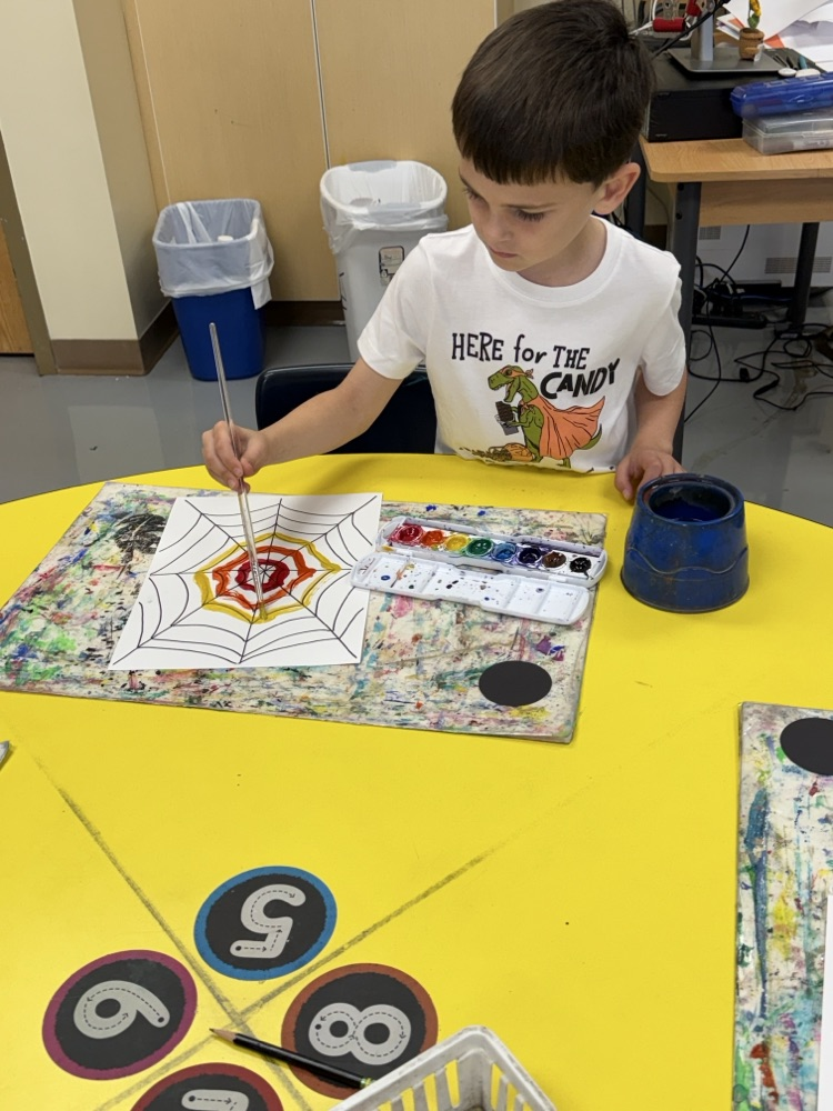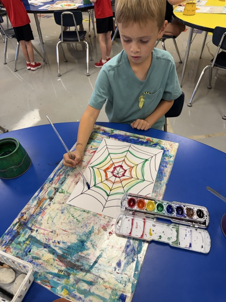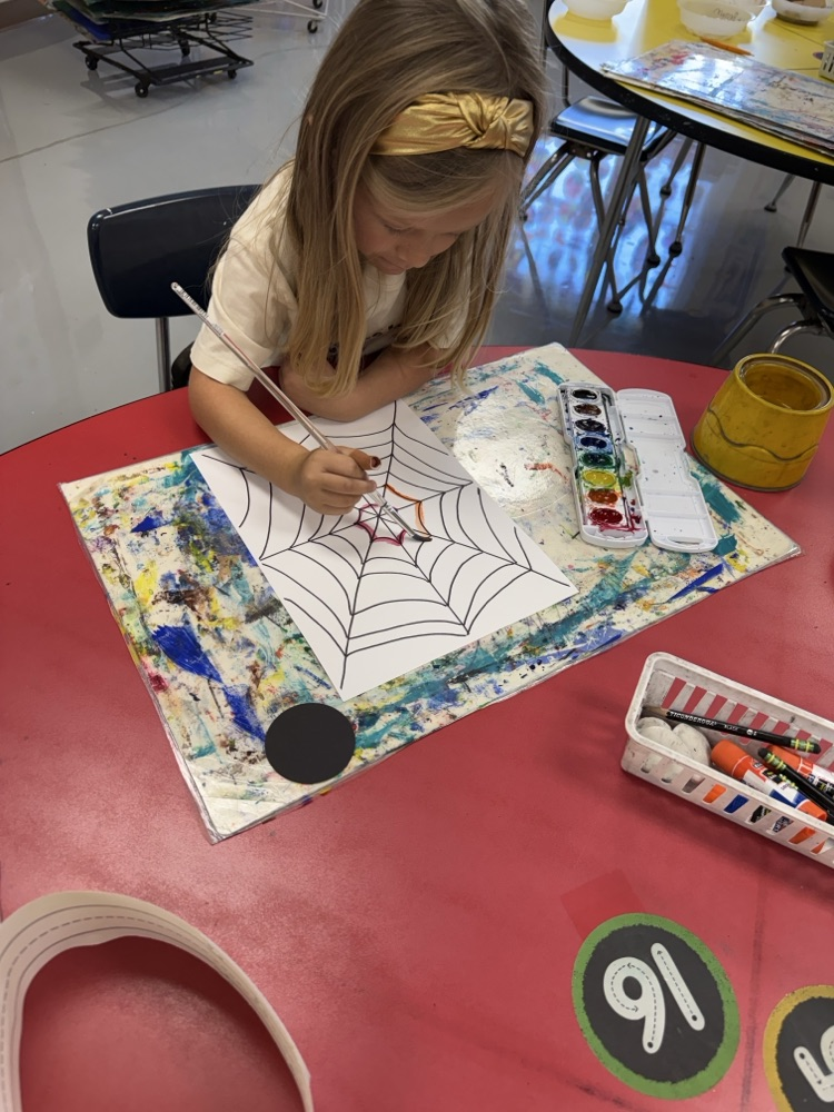 🎃🕷️ Kindergarten and Pre-First friends got crafty for Halloween! 🕸️ In art last week, Valley View Elementary students made rainbow spider webs — spooky, silly, and super colorful! 🌈👻