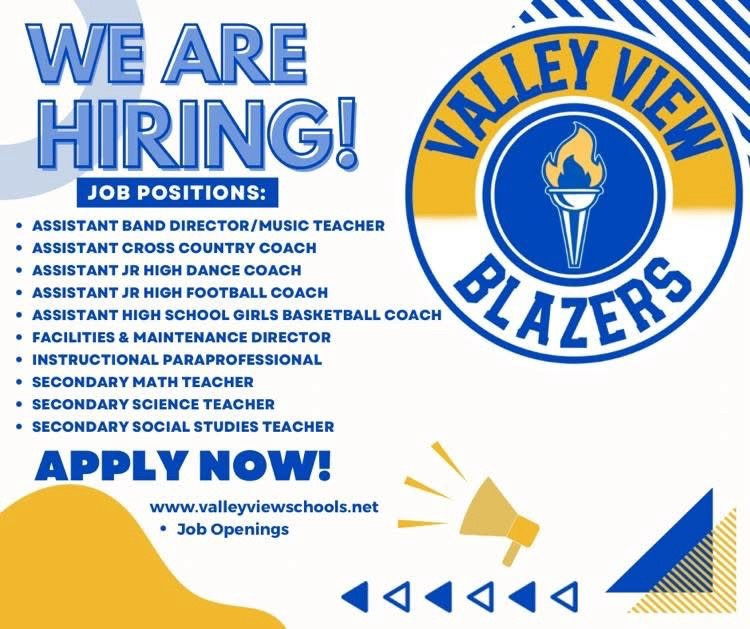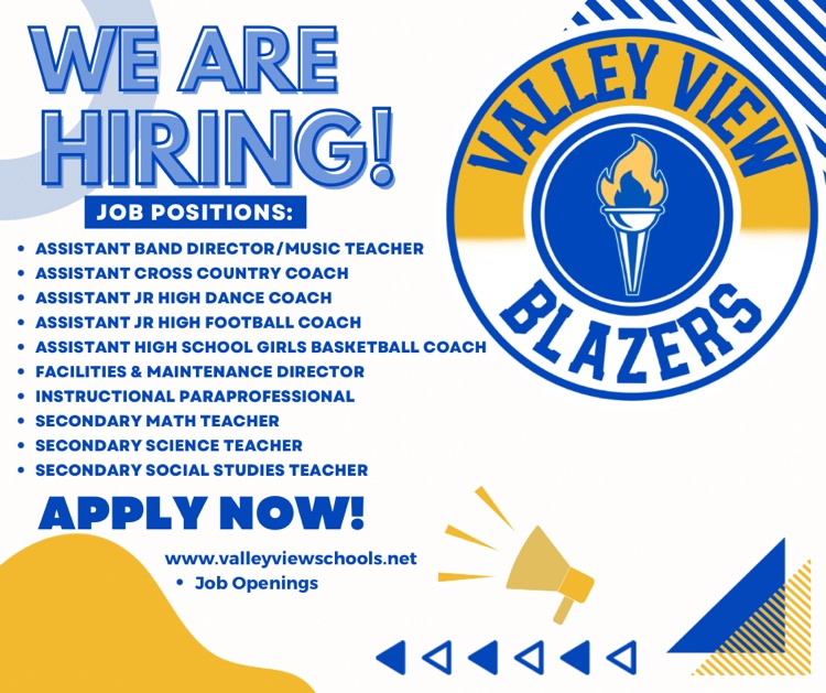 📢 Join our team! Visit www.valleyviewschools.net and click on Job Openings to apply today!