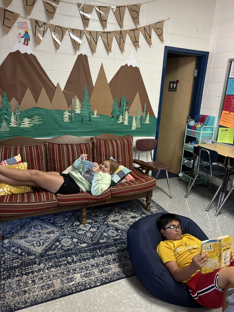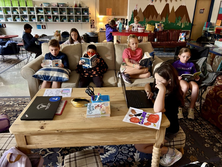 📚 I spy a group of our amazing fourth graders reading all around the classroom — focused, cozy, and loving their stories! 🫶