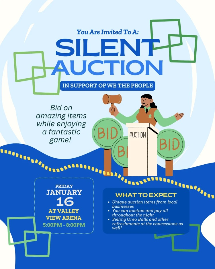 We’re hosting a We The People Silent Auction tomorrow night, January 16, at the basketball game!