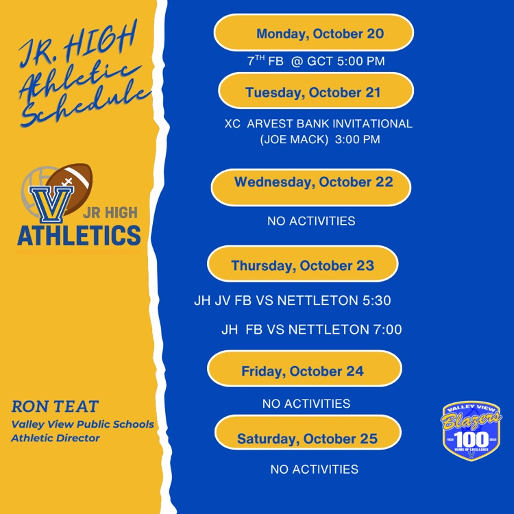 🔥 GAME DAY 🔥 It’s an important showdown tonight at Central Dealerships Stadium! 🏈 Jr Blazers are looking to continue their winning ways — don’t miss the action! • Jr High JV kicks things off at 5:30 PM • Jr. High Game starts at 7:00 PM Bring the energy. Bring the noise. Let’s pack the stands and support our Blazers! 💙💛 #OneFire #BlazerPride #GameDay #FuelTheFire