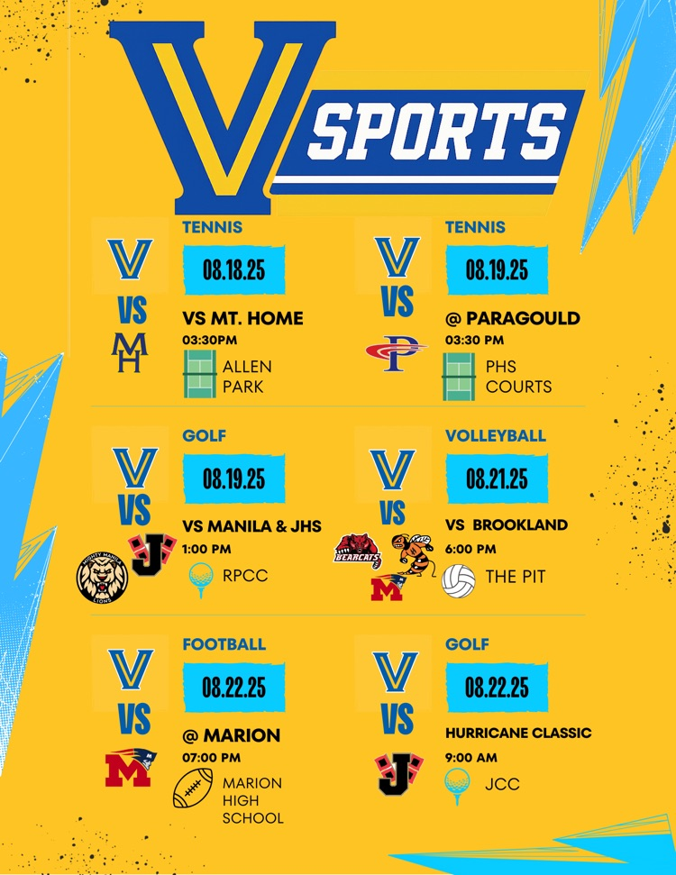 Less than 24 hours until this gym lights up! 🏐🔥 The 2025 AHSAA Sr High Benefit Volleyball Jamboree is bringing six back-to-back matches under one roof at Valley View Arena Gym. The energy? Off the charts. The rivalries? Real. The action? Non-stop. Here’s the lineup ⬇️ 5:30 – Valley View vs Brookland 6:00 – Harrisburg vs Marion 6:30 – Brookland vs Harrisburg 7:00 – Valley View vs Marion 7:30 – Brookland vs Marion 8:00 – Valley View vs Harrisburg 🎟 Admission just $5 (AAA passes accepted) 📍 Valley View Arena Gym Six matches. One court. Endless energy. See you there. 👊