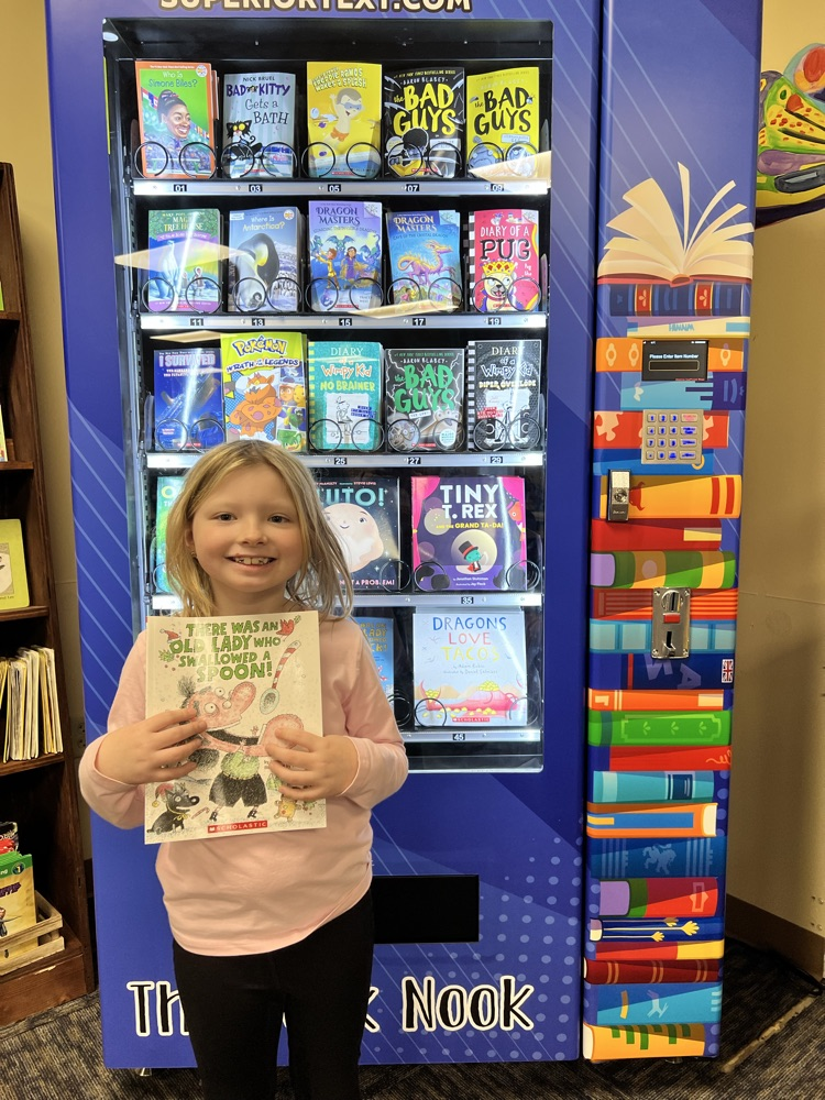 💙💛We are so excited to share our brand new Book Nook vending machine with students! BUT…we need your help! To keep our Book Nook fully stocked and make sure all students can continue to receive free books, we are asking for donations!