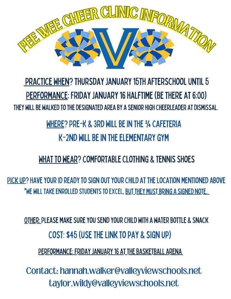 Signup to cheer with the Valley View Cheerleaders and perform at the basketball game on January 16th! 📣🏀