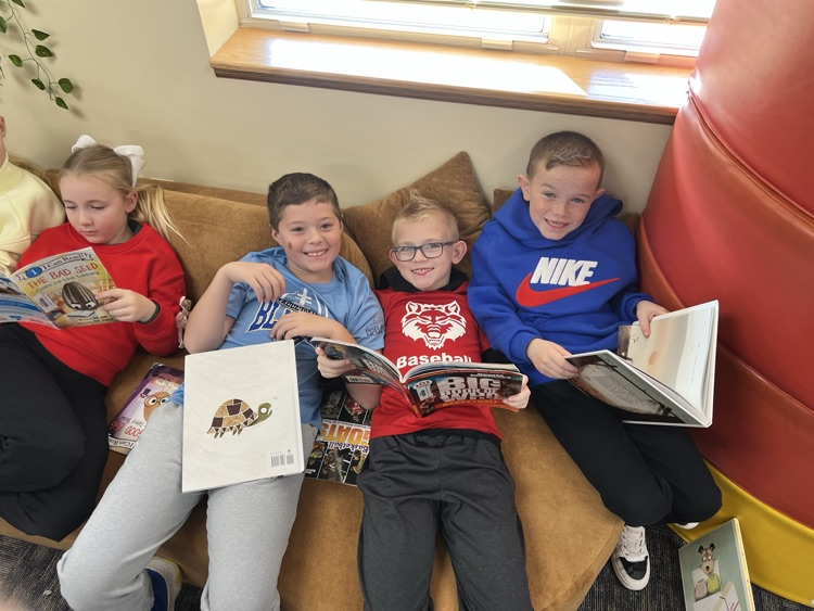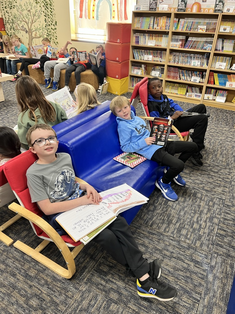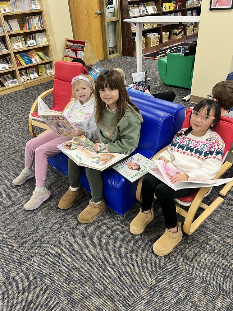 Students get to enjoy their newly checked-out books while finding a cozy spot around the library to relax, read, and dive into a great story. From comfy corners to quiet spaces, the library is the perfect place to slow down and get lost in a book! 💙